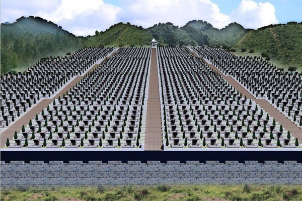 園區依山傍水,青山碧水掩映其中。石雕與槐樹根的相互輝映,傳統的古典建筑和現代化互相交替,優雅的庭院景色配以開闊的綠樹草坪,加上秀美的園林格局以及風格迥異的藝術浮雕,使整個陵園氣勢恢宏、風范典雅、靈氣聚現。園門處聳立著八根巨型龍柱,兩只威武的漢白玉獅王鎮守左右;宏偉的牌樓前四只石獅臥守陵園。園內綠樹成蔭,假山噴泉點綴其中,二十四孝長幅石雕橫跨園中,六萬多平方米的綠化、草坪、廣場(其中有一萬多平方米的大型停車場)及兩座大型放生池。毛主席時期修建的東風渠橫跨本陵園,渠里流淌著來自******景點廣勝寺的泉水,滿目的紅花綠草、亭臺樓閣、小橋流水,自然美景映襯著人文景觀。